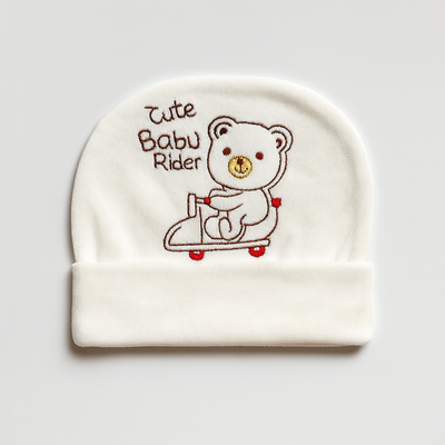 Baby Cap Cute Baby Rider | New Born Baby Caps | White