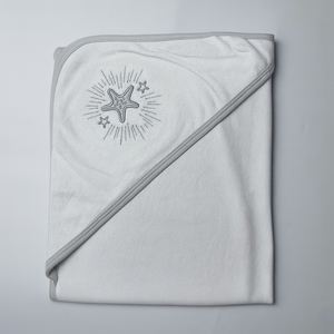This imported hooded bath towel is perfect for newborns. The soft white and pink color scheme adds a touch of delicacy, while the hood provides extra warmth and comfort for your baby. Keep your little one cozy and dry with this must-have towel.