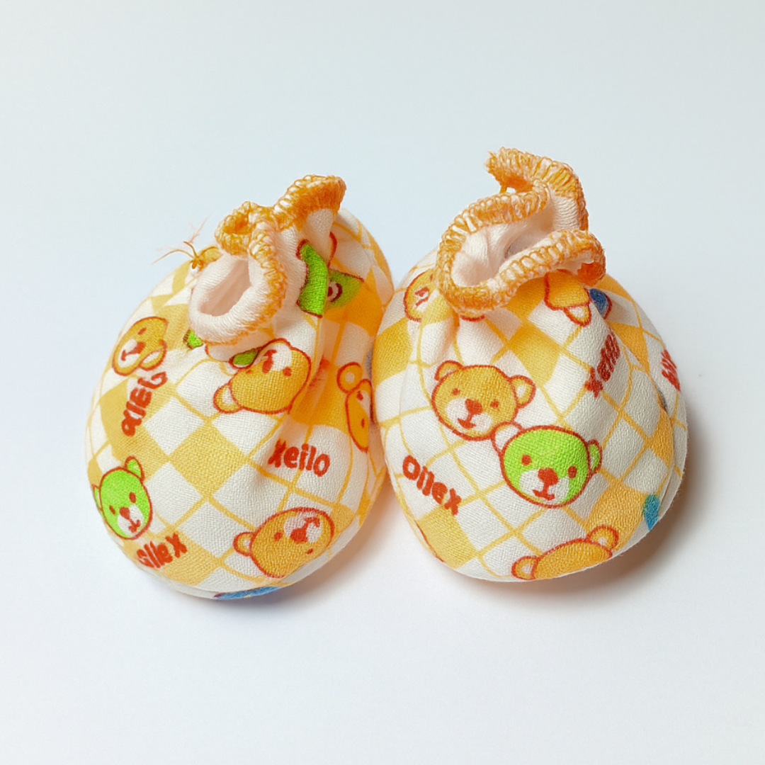 This set of 2 baby booties, featuring charming blue and orange bear designs, is expertly crafted for both baby boys and girls. Made from soft, breathable cotton, these booties provide gentle warmth and comfort while protecting delicate feet. Their snug fit supports natural movement, making them a practical and adorable choice for everyday wear.