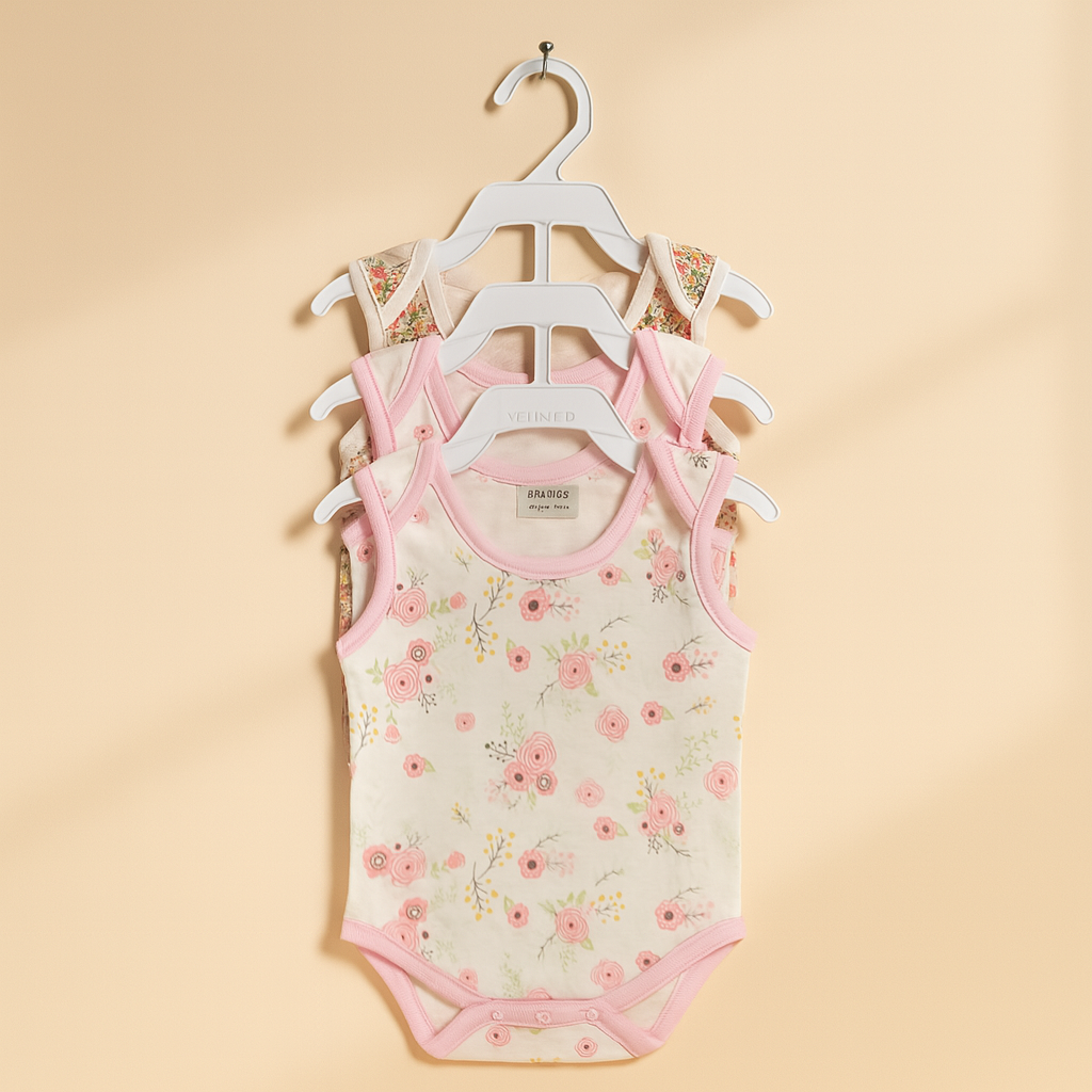 This set of three sleeveless bodysuits is designed for both baby girls and boys, offering comfort and ease of movement. Made from soft, breathable fabric, these rompers keep your little one cool and cozy. The sleeveless design allows for layering or standalone wear, making them versatile for different seasons. Easy snap closures ensure quick diaper changes, while the durable material withstands frequent washing. Ideal for everyday wear, this set combines practicality with gentle care for your baby’s sensitive skin.